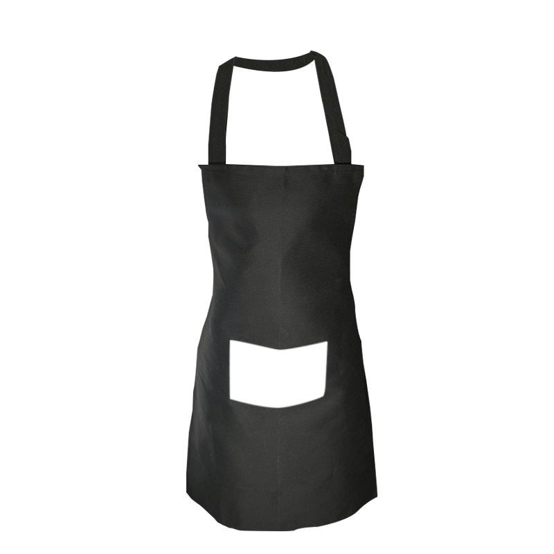 Create unique designs with full colour graphics, text, and logos. This large black polyester apron with white pocket is ideal for restaurants, catering businesses, and retail staff uniforms. It also makes a great personalised gift for home cooks and BBQ enthusiasts. The white pocket provides a striking contrast against the black fabric, making prints stand out with sharp clarity.